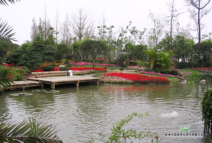 第六届中国花博会之浙江园,又名花漫钱塘。占地面积1420平方米,呈自然式布局,全园以浙江山水为背景,以母亲河钱塘江奔流入海为主线,一湾流水贯穿全园,"钱江源"、"晴空海蜃"两大景观交相辉映。园内绿树盎然,花漫遍地,洋溢着浙江的朝气与活力,体现了浙江自然山水、人文历史、经济社会的和谐。