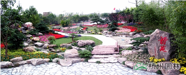 第六届中国花博会之浙江园,又名花漫钱塘。占地面积1420平方米,呈自然式布局,全园以浙江山水为背景,以母亲河钱塘江奔流入海为主线,一湾流水贯穿全园,“钱江源”、“晴空海蜃”两大景观交相辉映。园内绿树盎然,花漫遍地,洋溢着浙江的朝气与活力,体现了浙江自然山水、人文历史、经济社会的和谐。