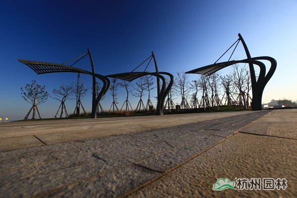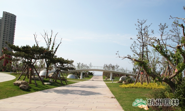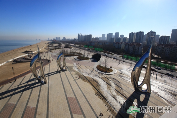 烟台开发区滨海广场项目位于开发区海滨路以北、峨眉山路与昆仑路之间,施工面积约10万平方米,施工内容主要包括绿化种植、硬质铺装、园林建筑、水电安装等,施工内容多,工艺要求高,工程量大,是一个大型综合性园林工程项目,由杭州市园林绿化股份有限公司承建。