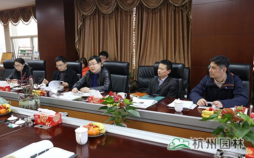 3月16日下午,江干区副区长王卫安、区政府办主任陈叶亮、区发改局局长王栋、四季青街道办事处副主任魏琦敏一行莅临杭州市园林绿化股份有限公司调研工作,与董事长吴光洪、总裁张炎良等企业主要负责人进行了倾心座谈。