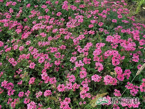 美女樱,其姿态优美,花色丰富,色彩艳丽,盛开时如花海一样,令人流连忘返。美人樱株丛矮密,花繁色艳,开花部分呈伞房状,花色有白、红、蓝、雪青、粉红等,花期为5-11月。喜阳光、不耐阴,较耐寒、耐荫差、不耐旱?;ㄆ诳膳缌姿岫饧兀俳?。