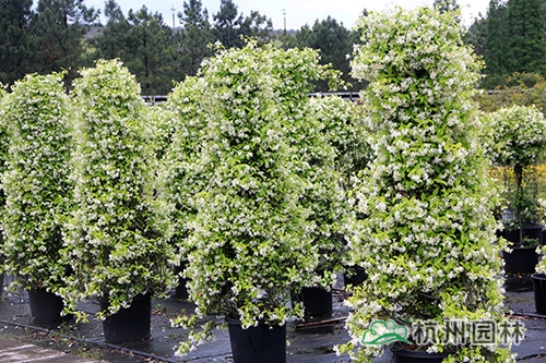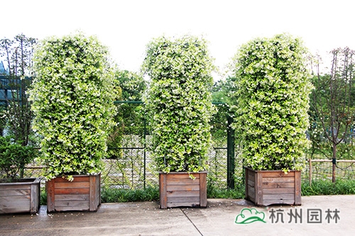 风车茉莉还可以通过不断修剪进行造型,枝条的柔软性和叶片的常绿性能带给人非?;独值脑耙仗逖?。