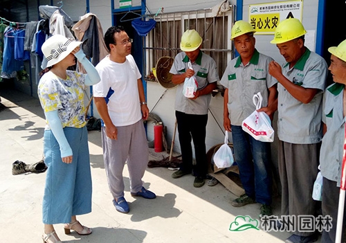 7月20日至28日,杭州市园林绿化股份有限公司的夏季高温防暑慰问工作也陆续进行,工会领导和各有关部门负责人带着防暑降温物品,奔赴各大在建项目工地,为一线施工人员带去全体员工的关心和慰问。