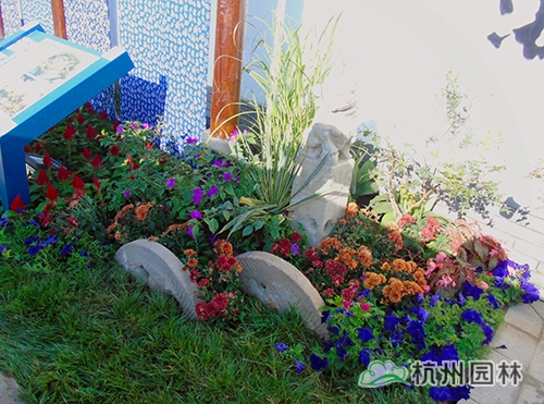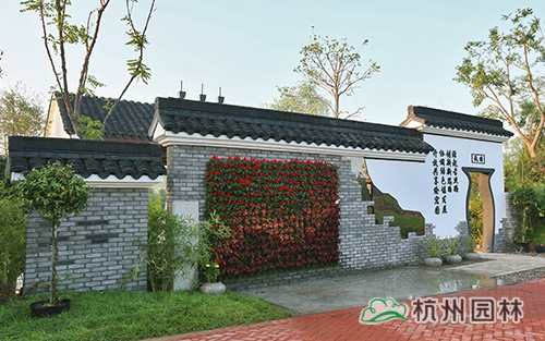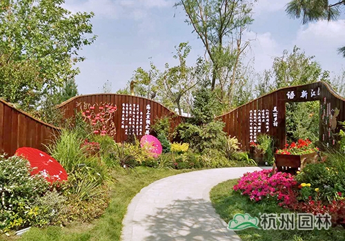 考虑到银川的干燥气候,垂直绿化墙植物的保湿成为难题?!罢憬啊贝怪甭袒揭晕薹牟嘉教宀牧?,使用保湿性强的基质,优选植物种类,同时搭配滴灌系统,保证了绿化墙鲜花拥簇的景象。展园内的垂直绿化墙设计简洁、曲线优美,与以钱塘江文化为主题的背景墙相互映衬,共同展现了新时期浙江园林景观的不断发展与创新。
