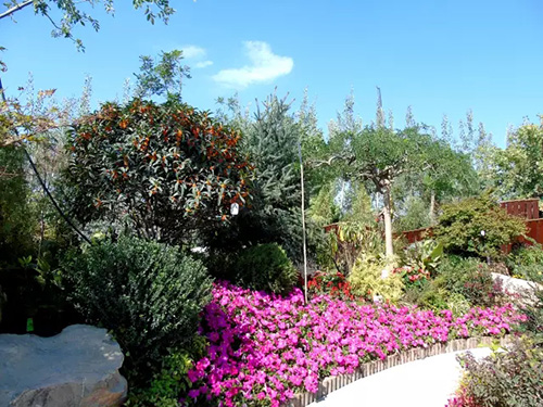 花博会开放时间是9月份,为配合开园需要,根据不同植物的开花特性及要求,采取相应的措施,确保植物的最佳观赏效果。桂花是杭州市市花,是集绿化、美化、香化于一体的优良园林树种,一般在仲秋时节绽放,“浙江园”的桂花全部精选自杭州画境种业有限公司,提前运送至银川之后,利用当地的低温环境诱使其完成花芽分化,在开园时营造了桂花满树、满园飘香的氛围。八仙花又名绣球,花大色美,是长江流域著名观赏植物,在明、清时代建造的江南园林中就栽有八仙花。特别是八仙花‘无尽夏’具有多次开花的特点,项目人员通过修剪、培育,促进其花芽的再次分化,使展园内的八仙花处于生长繁茂、花团锦簇的良好状态。此外,还结合公司“一种红枫快速成景方法”等专利,运用摘叶等形式促进槭树科植物萌发新叶,为九博会的开幕增添新的色彩。