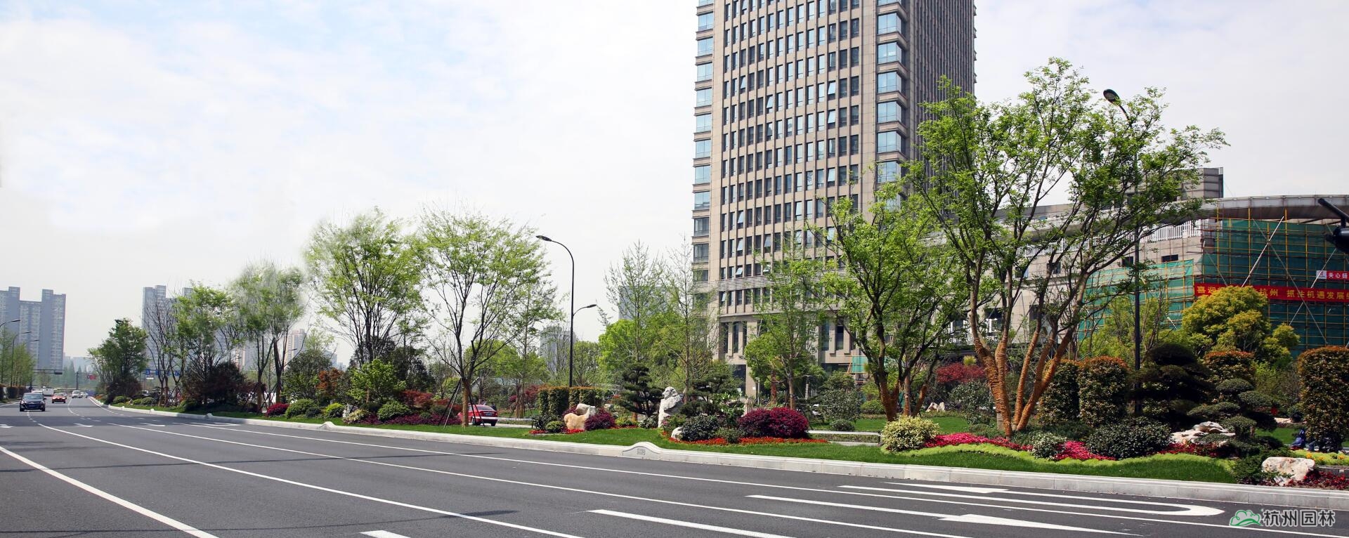 新塘路位于杭州城市东部,是连通杭州火车东站与钱江新城的主要交通要道,也是杭州G20峰会的主要迎宾大道。由杭州市园林绿化股份有限公司承建的新塘路(新风路-新业路)综合整治工程景观绿化I标段,南起新业路,北至昙花庵路,施工内容包括绿化种植、景墙、土方工程、硬质铺装等。
