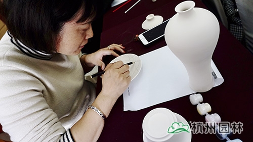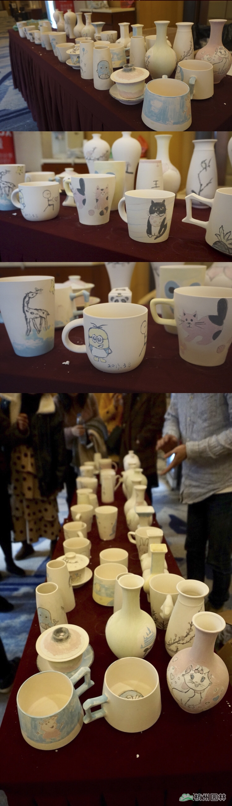 说起陶艺,大家想到的肯定是双手扶着转盘上的陶泥,捏出形态各异作品的场景,但今天我们玩点不一样的。素胚固然清爽,但少了色彩的点缀,总会觉得好像黑白电影略显枯燥。是的,这次我们将画纸搬到了这些瓶瓶罐罐之上。认真的女人真的很美,一幅幅生动的画作在短短的一个多小时的时间里展现在了大家的眼前。有山水,有动物,有卡通画,有说要送给家中宝宝的,也有说这代表了我们一家三口的。拿起画笔的小仙女们,不再是那些个日常办公室里的形象了,她们在今天,把自己的可爱、风趣、温婉、随性等等面貌展现得淋漓尽致。
