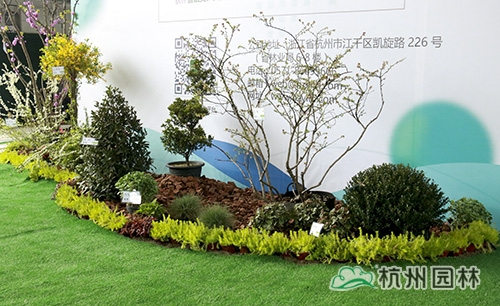 杭州园林的展位位于中栋国际花木城(展位号:特装展位1),该展位侧重于植物造景展示,通过各种自然形状及造型植物的有机搭配,营造出花园季相变化的景观效果。