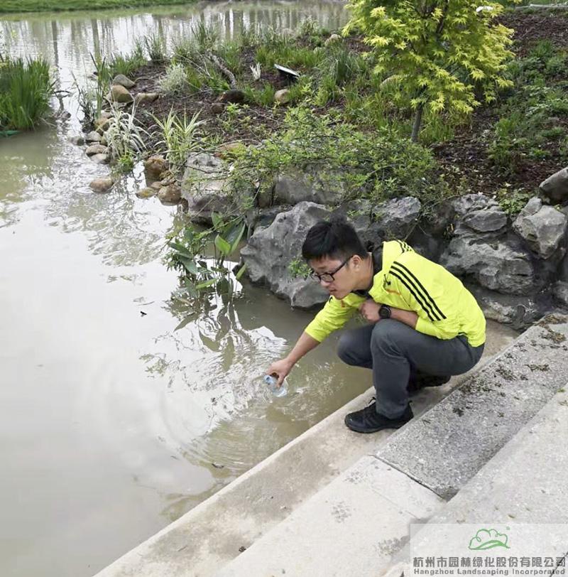 研发中心副主任高凯在浙江园取水样测PH