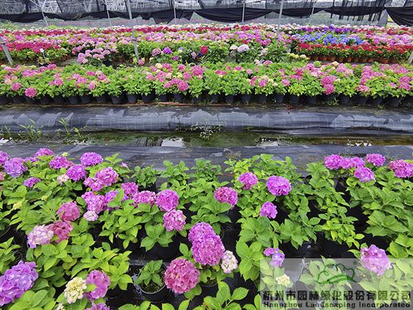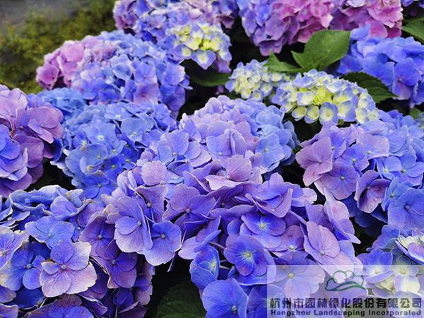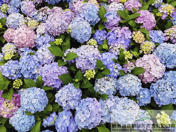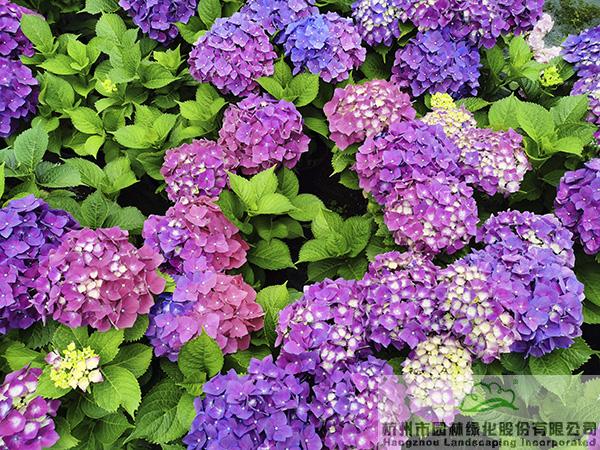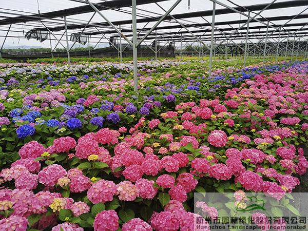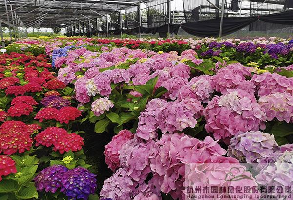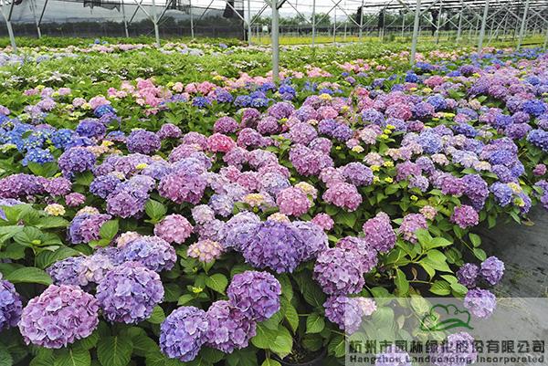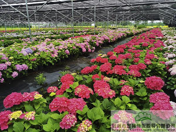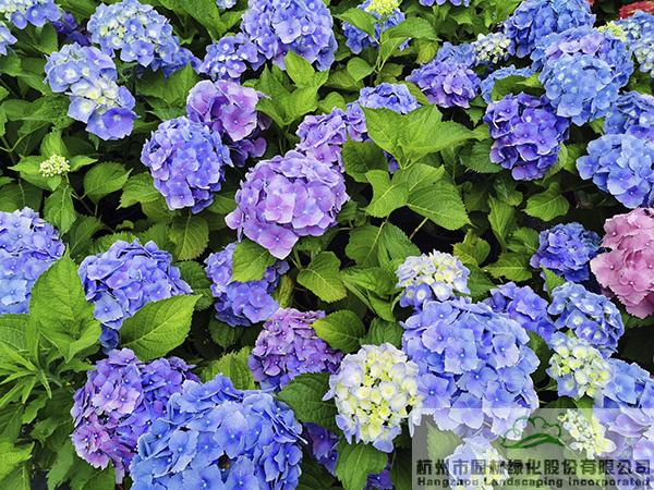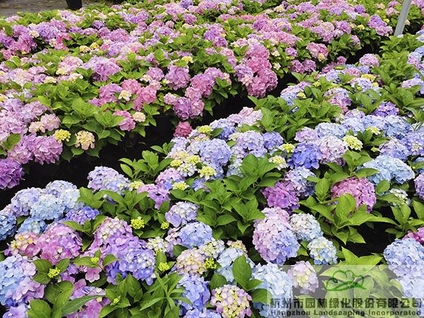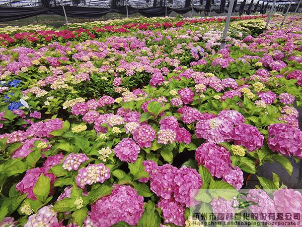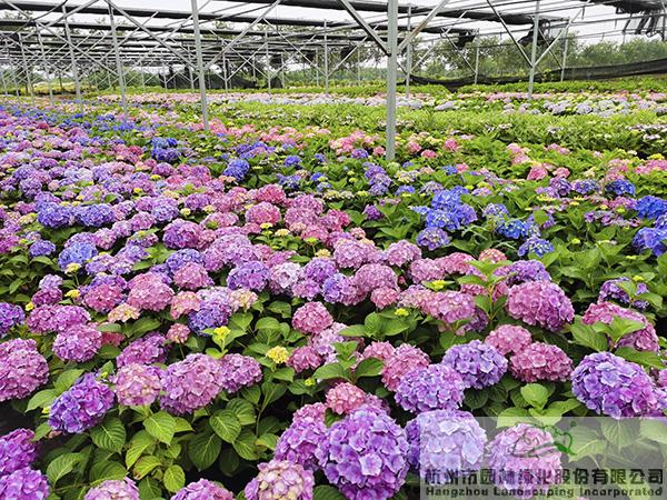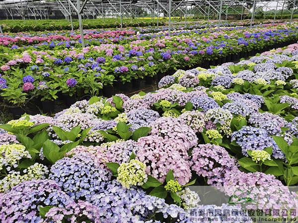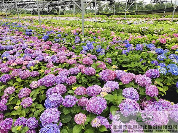 五、六月份,走进杭州画境种业有限公司径山基地,依然是一片忙碌的景象,工人们正在忙着苗圃的管理,客户们正在忙着看苗选苗。在满眼的绿色中,独有一片姹紫嫣红瞬间吸引了人的目光。走近一看,原来是盛开的绣球。琳琅满目的品种,缤纷绚丽的色彩,在夏日的阳光下恣意绽放,开出一片繁花似锦,开出一场花海盛宴?;安欢嗨担瓤匆徊劳及?。