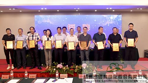 随后,进行了隆重的表彰仪式,对北京世界园艺博览会浙江省花卉协会参展工作先进集体和个人、浙江省花卉协会第五届理事会工作先进集体和个人进行了表彰。其中,杭州市园林绿化股份有限公司获得“北京世界园艺博览会浙江省花卉协会参展工作先进集体”和“浙江省花卉协会第五届理事会工作先进集体”两项殊荣;吴小成、高博、钟晴三位同志获得“北京世界园艺博览会浙江省花卉协会参展工作先进个人”称号;叶伟华、钟晴、于会莲、王曦四位同志获得“浙江省花卉协会第五届理事会工作先进个人”称号。