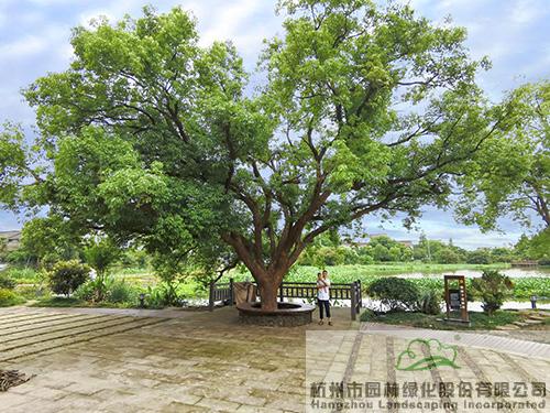 村前的小公园,是村民饭后散步、乘凉的好去处。用旧青砖搭配旧瓦片、老石板、老石磨等营造的低矮景墙,在划分空间的同时,更成为一种怀旧情感的寄托,与白墙黑瓦的建筑遥相呼应,营造出古朴、宁静的氛围。几株大香樟树枝繁叶茂,洒下一地绿荫,成为村民乘凉的好去处,它们陪伴村民走过了几十年的风雨,见证了村庄的发展变迁,寄托着村民的乡愁。为了保护它们,施工时禁止大型机械进场,全部采用人工作业,并在周边进行?;ぃ罱ǚ栏臼鞒刈?,既可以?;ご笫?,又可供村民在此闲坐。植物配置充分考虑当地的民风民俗,听取村民意愿,种植枇杷、桃树、梨树、苹果树、红叶李、柿子树等果树,搭配桂花、无患子、银杏等乡土树种,营造出浓郁的乡村田园风情。