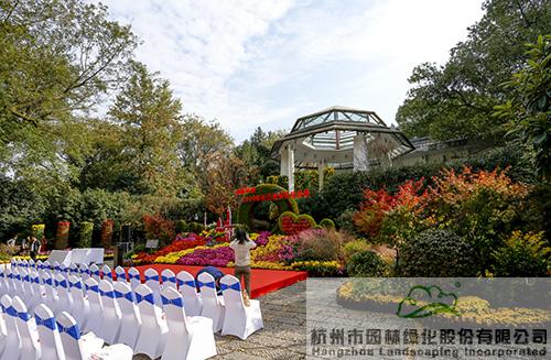 由杭园股份设计及施工的展品《江海相望 菊影弄潮》,以传统园林中的月门为主景,结合浪、船、影等构图元素,运用花带、花球、绿雕等形式,以菊的情致携西湖的精致,动静结合,营造出潮起江海、劈浪前行,守望相助、璀璨芳华的生动意境。此景象征着新时代长三角一体化“引航远帆”的涌动和发展;讲述着中华儿女携手抗疫、共克时艰的动人故事。