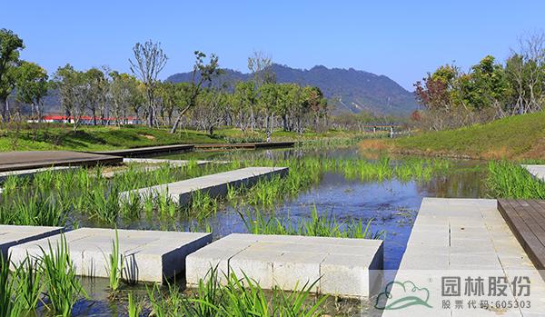 项目还充分利用浒溪及灵峰湖沿线的湖湾和众多洼地,引水入园,打造雨水花园、下沉式绿地等,通过丰富的植物配置与景观小品,形成沿湖而生的各个景点,并设置各色景观桥连通内塘与外湖的生态通道,将周边景点有机串连?;据谵ň吧饕?,湖光山色相映成趣,整个浒溪沿线形成一个可循环的生态系统,有效改善和美化了周边环境,展现可持续发展的造园理念。