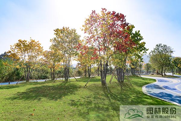 秉承生态自然的造园理念,项目建设中尽可能地保留了大量原生树种,通过修剪整形、林下景观提升等,使这些原生树木焕发出全新生机。在此基础上,新增大量的乡土树种,既丰富景观群落结构,完善景区生态系统,又便于后期养护管理,营造特色乡土景观,体现节约型园林理念。