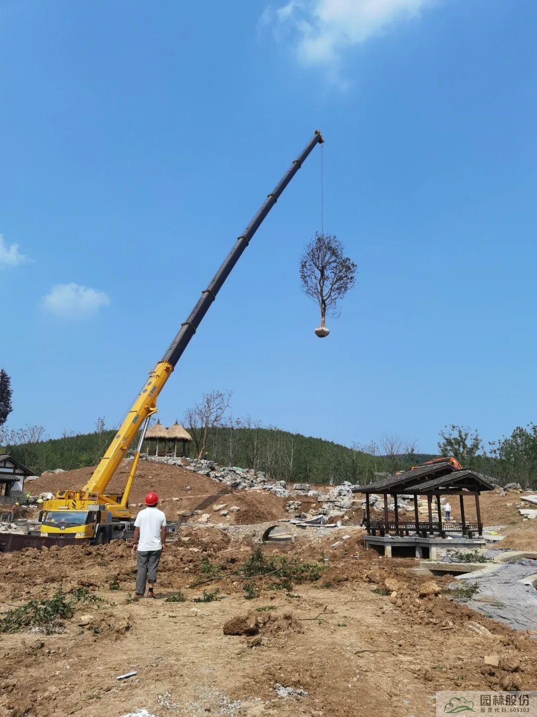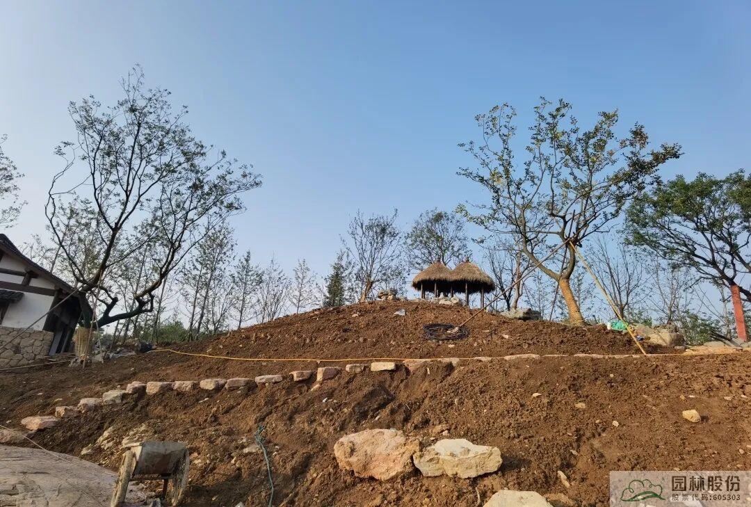 截止目前,杭州园已完成隐秀、湖畔精舍两栋建筑背景乔木,茶园区域骨架树和登山道银杏林、背景乔木种植,接下来将进行灌木以及湖岸边乔木种植。