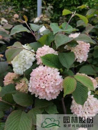 忍冬科荚蒾属,落叶灌木,国内从日本引进,株高可达2.5-3m。新叶成暗红色,后期会慢慢褪去,呈绿色。整个花序都是不育花,球形,花苞粉绿色,开放后淡粉色,最后变成白色?;ㄆ?月初到5月初。秋天的树叶颜色多变,像油画调色板一样绚丽多彩。它适应我国大部份地区种植,病虫害较少。冬季至早春可修剪。一年施肥3次,早春萌芽前,花后及秋季。适合园艺盆栽或庭院观赏。