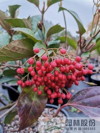 忍冬科荚蒾属,落叶灌木,高可达3米。叶暗绿色,聚伞花序,单个花序径较小,花冠白色,花期3-4月。核果球状卵形,果量大,色彩从黄色渐变成橙色,最后转成红色,观果期可长达5月。冬季至早春可修剪。一年施肥3次,早春萌芽前,花后及秋季。该种耐干旱,适合工程应用或庭院观赏。