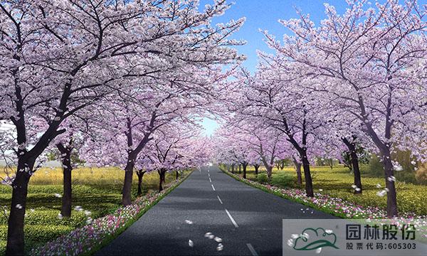 以早樱为主题打造春花烂漫的樱花大道,中下层配置夏秋开花植物,结合周边农田景观,形成四季可赏之景。