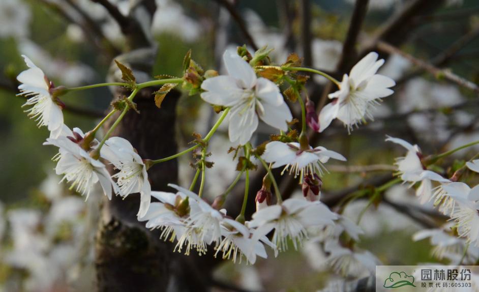 这些樱花品种花色丰富,特色各异,其中,‘纤秀’为落叶小乔木,树皮灰白色,小枝灰棕色;叶片卵状椭圆形;花先叶开放,总状伞形花序,每花序有花3~5朵,稀2朵;花梗长12~17mm,绿色;花瓣白色,或花瓣边缘粉色,中下部白色,花径2.5~2.8cm,核果红色,成熟后直径约1cm?;ㄆ?~3月。