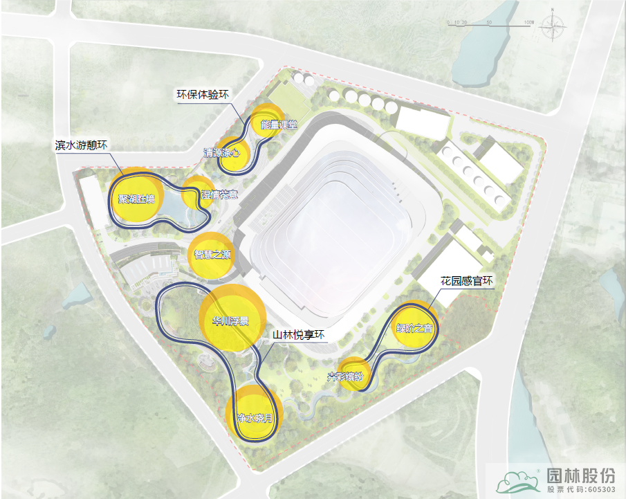四环:环保体验环、滨水游憩环、山林悦享环、花园感官环;