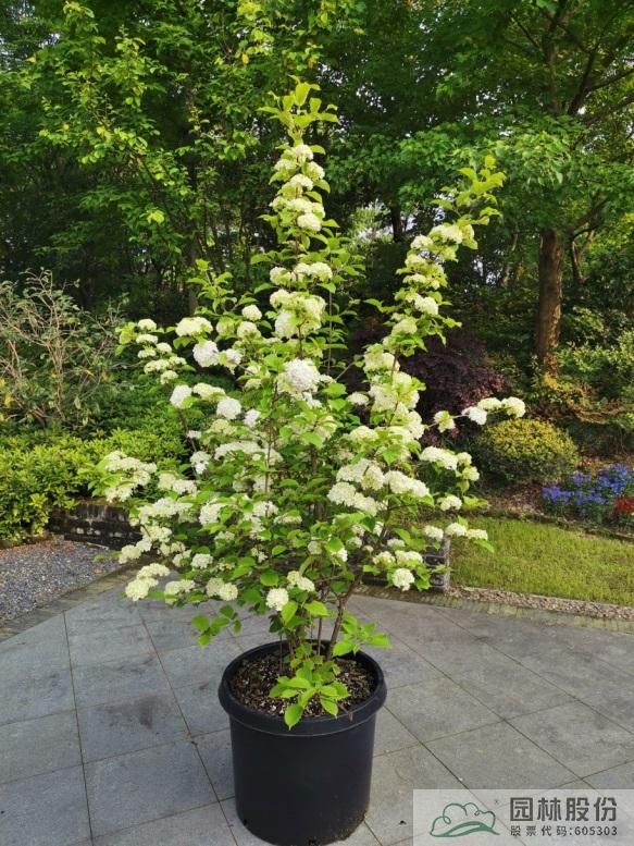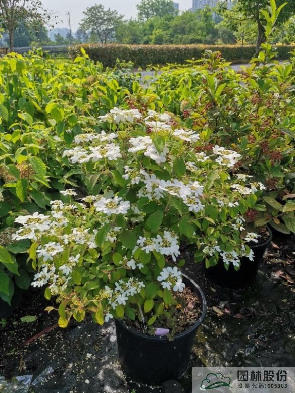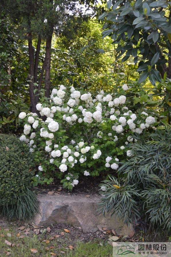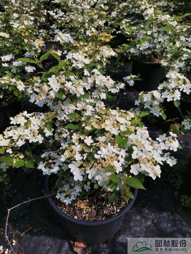 忍冬科荚蒾属,落叶灌木,树姿舒展?;ㄐ虬肭蛐?,全为不孕花,开花时满树白花犹如积雪压枝,高洁素雅,花谢后则绿叶如碧,无论花叶均具有较好的景观效果。生长强健,喜欢散射光环境,适合工程应用或庭院观赏。