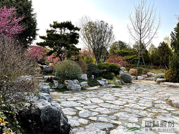运用山石点缀园林空间,比如:路石、驳岸、挡土墙、石矶、踏步、护坡、花坛,既造景又具实用功能;石材的机理及质感在环境中可起到点晴作用,使园林空间层次感及深度得以加强。
