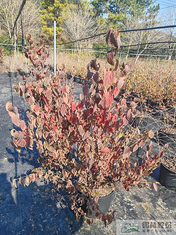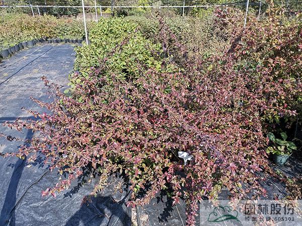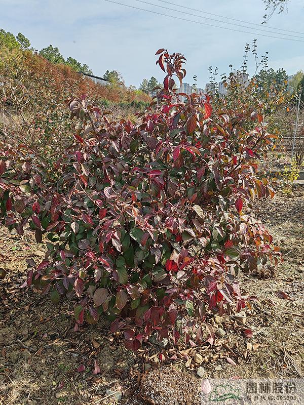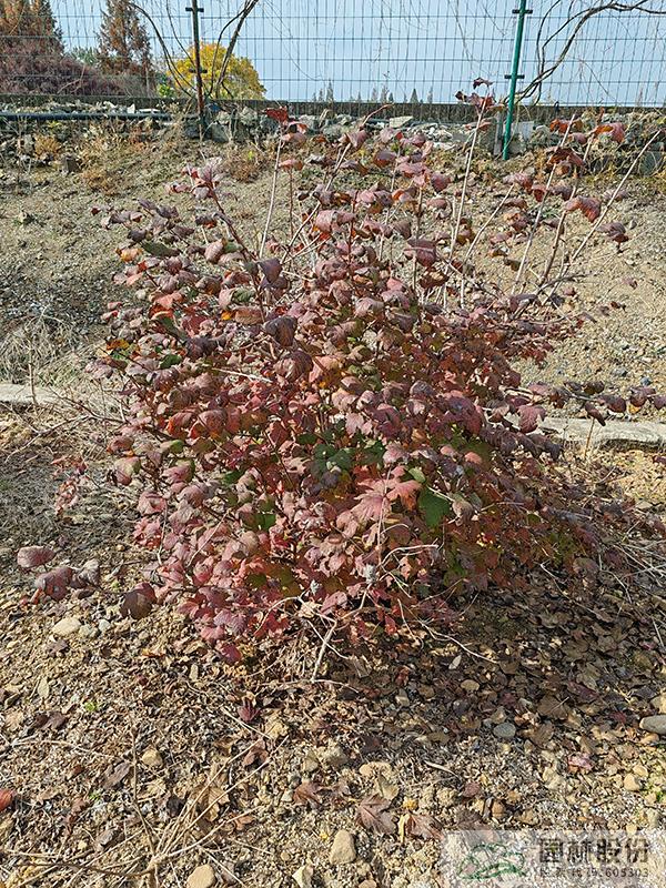 忍冬科荚蒾属,半落叶披散状灌木?;ò咨?,花量大,花期6月。果红色,果期长,通常10月至次年1月。秋季叶色变暗红至鲜红,通常10月开始变色,部分红叶能一直保存至次年春天。病虫害较少,生长速度较快,且耐寒。植株极耐修剪,适合工程应用或庭院观赏。