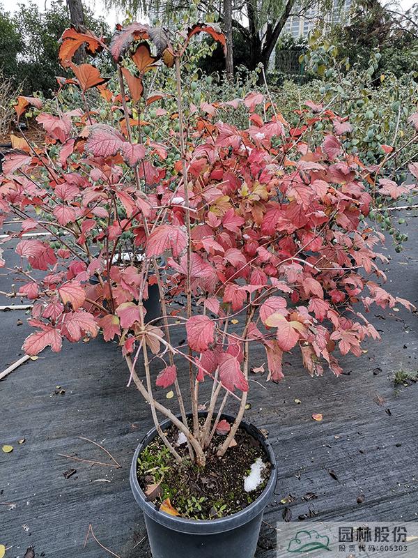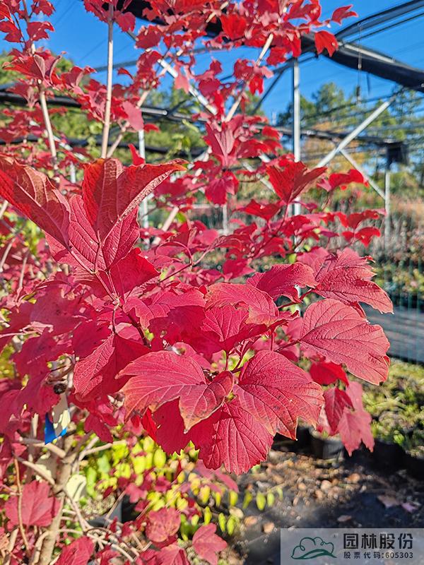 忍冬科荚蒾属,丛生性落叶灌木,高可达4米?;ò咨?,花期4-5月,果大而红,观果期长,可从7月持续到10月。叶掌状,通常三裂,秋季一般9-10月叶色开始转红,11月达到最佳效果。欧洲荚蒾是荚蒾属中秋色叶效果较好的一个种类,红叶期来得比较早,且叶色最为鲜艳。该种病虫害少,适应性强,耐寒,北方室外能正常生长。生长速度快,适合工程应用或庭院观赏。